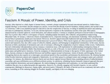Fascism: A Mosaic of Power, Identity, and Crisis. (2024, Mar 01). Retrieved from https://hub.papersowl.com/examples/fascism-a-mosaic-of-power-identity-and-crisis/