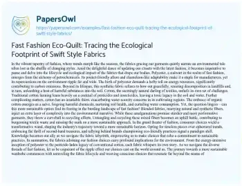 Fast Fashion Eco-Quilt: Tracing the Ecological Footprint of Swift Style Fabrics. (2024, Mar 12). Retrieved from https://hub.papersowl.com/examples/fast-fashion-eco-quilt-tracing-the-ecological-footprint-of-swift-style-fabrics/