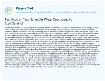 Fast Food on Your Schedule: When Does Wendy's Start Serving?. (2024, Feb 27). Retrieved from https://hub.papersowl.com/examples/fast-food-on-your-schedule-when-does-wendys-start-serving/