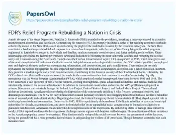 FDR's Relief Program: Rebuilding a Nation in Crisis. (2024, May 12). Retrieved from https://hub.papersowl.com/examples/fdrs-relief-program-rebuilding-a-nation-in-crisis/