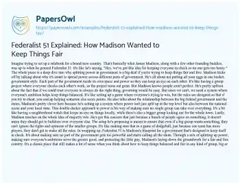 Federalist 51 Explained: How Madison Wanted to Keep Things Fair. (2024, Feb 27). Retrieved from https://hub.papersowl.com/examples/federalist-51-explained-how-madison-wanted-to-keep-things-fair/