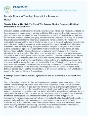 Female Figure in The Iliad: Masculinity, Power, and Honor. (2023, Aug 08). Retrieved from https://hub.papersowl.com/examples/female-figure-in-the-iliad-masculinity-power-and-honor/