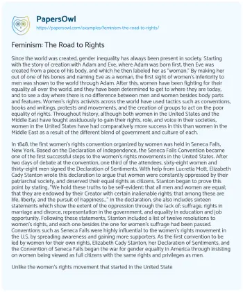 Feminism: The Road to Rights. (2021, Apr 26). Retrieved from https://hub.papersowl.com/examples/feminism-the-road-to-rights/