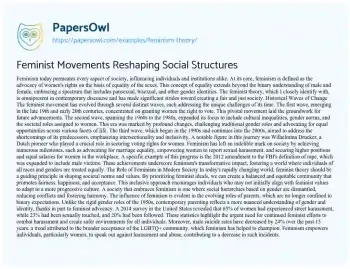 Feminist Movements Reshaping Social Structures. (2021, May 04). Retrieved from https://hub.papersowl.com/examples/feminism-theory/
