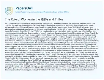 The Role of Women in the 1950s and Trifles. (2021, Jul 10). Retrieved from https://hub.papersowl.com/examples/feminist-critque-of-the-1950s/