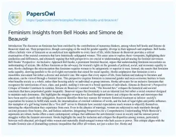 This essay will compare the feminist theories of Bell Hooks and Simone de Beauvoir. It will discuss their contributions to feminist thought and how their ideas intersect and diverge. At PapersOwl, you’ll also come across free essay samples that pertain to Critical Theory.