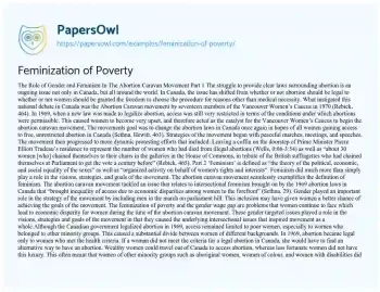 ‘Feminism’ is defined as “the theory of the political, economic, and social equality of the sexes” as well as “organized activity on behalf of women's rights and interests”. Feminism did much more than simply play a role in the visions, strategies, and goals of the movement. The abortion caravan movement seamlessly exemplifies the definition of feminism. The abortion caravan movement tackled an issue that relates to intersectional feminism brought on by the 1969 abortion laws in Canada that “brought inequality of access due to economic disparities among women to the forefront” (Sethna, 29). Gender played an important role in the strategy of the movement by including men in the march on parliament hill. This inclusion may have given women a better chance of achieving the goals of the movement. The feminization of poverty and the gender wage gap are problems that women continue to face which lead to economic disparity for women during the time of the abortion caravan movement.