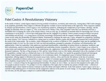 Fidel Castro: A Revolutionary Visionary. (2024, Mar 01). Retrieved from https://hub.papersowl.com/examples/fidel-castro-a-revolutionary-visionary/