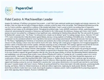 Fidel Castro: A Machiavellian Leader