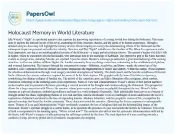 Holocaust Memory in World Literature. (2023, Aug 21). Retrieved from https://hub.papersowl.com/examples/figurative-language-in-night-unmasking-holocaust-horrors/
