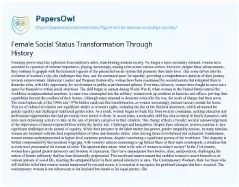Female Social Status Transformation Through History. (2021, Mar 26). Retrieved from https://hub.papersowl.com/examples/figure-of-the-woman-in-todays-society/