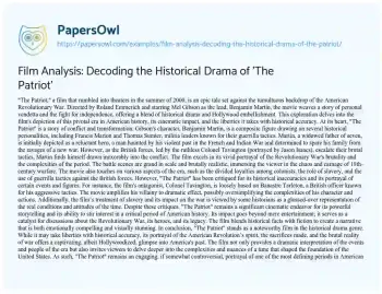 Film Analysis: Decoding the Historical Drama of 'The Patriot'. (2024, Jan 16). Retrieved from https://hub.papersowl.com/examples/film-analysis-decoding-the-historical-drama-of-the-patriot/