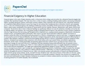 Financial Exigency In Higher Education. (2024, Apr 29). Retrieved from https://hub.papersowl.com/examples/financial-exigency-in-higher-education/