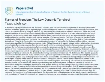 Flames of Freedom: The Law Dynamic Terrain of Texas v. Johnson. (2024, Mar 01). Retrieved from https://hub.papersowl.com/examples/flames-of-freedom-the-law-dynamic-terrain-of-texas-v-johnson/