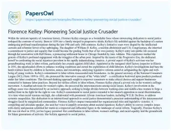 Order now Kelley's entry into public life occurred through her association with Hull House, a pioneering settlement house in Chicago founded by Jane Addams. This experience marked the genesis of Kelley's profound engagement with the struggles of the urban poor. Inspired by the tenets of the Progressive Era, she dedicated herself to confronting the social injustices prevalent in the rapidly industrializing America.
