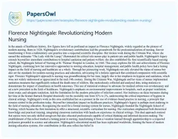 Florence Nightingale: Revolutionizing Modern Nursing. (2025, Mar 30). Retrieved from https://hub.papersowl.com/examples/florence-nightingale-revolutionizing-modern-nursing/