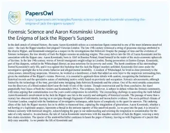 Forensic Science and Aaron Kosminski: Unraveling the Enigma of Jack the Ripper's Suspect. (2024, Jan 16). Retrieved from https://hub.papersowl.com/examples/forensic-science-and-aaron-kosminski-unraveling-the-enigma-of-jack-the-rippers-suspect/