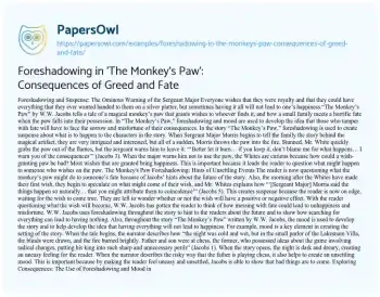 Foreshadowing in ‘The Monkey’s Paw’: Consequences of Greed and Fate