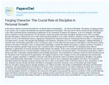 Forging Character: The Crucial Role of Discipline in Personal Growth. (2024, Mar 12). Retrieved from https://hub.papersowl.com/examples/forging-character-the-crucial-role-of-discipline-in-personal-growth/