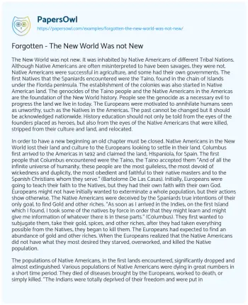 Forgotten - The New World Was not New. (2021, Jun 17). Retrieved from https://hub.papersowl.com/examples/forgotten-the-new-world-was-not-new/