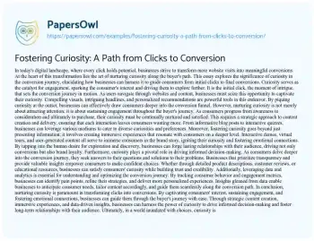 This essay is about the importance of nurturing curiosity in guiding consumers from initial clicks to final conversions in the digital landscape. It emphasizes how businesses can sustain engagement by providing compelling content and immersive experiences throughout the buyer’s path. By leveraging various mediums and prioritizing transparency, businesses can satisfy consumer curiosity, drive informed decision-making, and foster lasting relationships. Additionally, data and analytics play a crucial role in understanding consumer behavior and optimizing the conversion journey. Overall, this essay highlights the significance of curiosity in transforming clicks into conversions and underscores its role in shaping successful marketing strategies in today’s competitive environment. PapersOwl showcases more free essays that are examples of Curiosity.