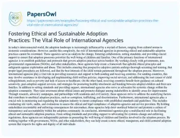 Fostering Ethical and Sustainable Adoption Practices: The Vital Role of International Agencies. (2024, Mar 12). Retrieved from https://hub.papersowl.com/examples/fostering-ethical-and-sustainable-adoption-practices-the-vital-role-of-international-agencies/