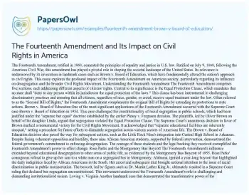 The Fourteenth Amendment and Its Impact on Civil Rights in America. (2021, May 14). Retrieved from https://hub.papersowl.com/examples/fourteenth-amendment-brown-v-board-of-education/