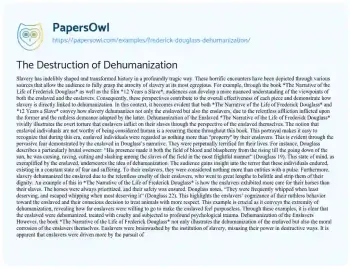 The Destruction of Dehumanization. (2021, Apr 19). Retrieved from https://hub.papersowl.com/examples/frederick-douglass-dehumanization/