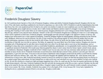 Frederick Douglass Slavery. (2021, Apr 19). Retrieved from https://hub.papersowl.com/examples/frederick-douglass-slavery/