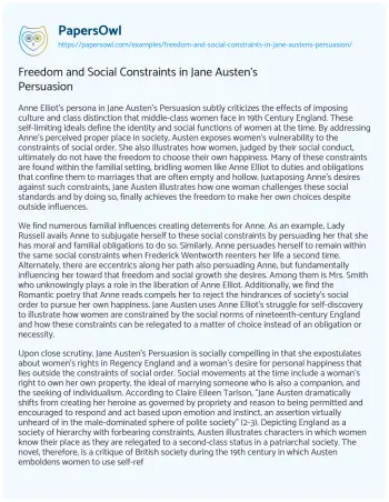 Freedom and Social Constraints in Jane Austen’s Persuasion