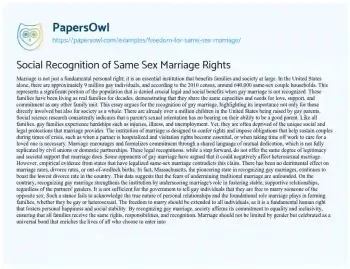 Social Recognition of Same Sex Marriage Rights. (2021, Jul 03). Retrieved from https://hub.papersowl.com/examples/freedom-for-same-sex-marriage/