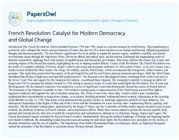 French Revolution: Catalyst for Modern Democracy and Global Change. (2019, May 17). Retrieved from https://hub.papersowl.com/examples/french-revolution-great-changes-in-france/