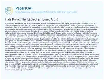 Frida Kahlo: The Birth of an Iconic Artist. (2024, Jun 17). Retrieved from https://hub.papersowl.com/examples/frida-kahlo-the-birth-of-an-iconic-artist/