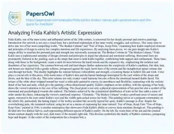 Analyzing Frida Kahlo's Artistic Expression. (2019, Mar 06). Retrieved from https://hub.papersowl.com/examples/frida-kahlos-broken-canvas-pain-perseverance-and-the-quest-for-freedom/