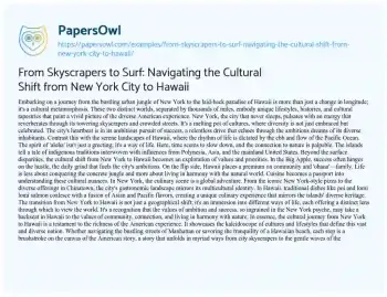From Skyscrapers to Surf: Navigating the Cultural Shift from New York City to Hawaii. (2024, Mar 02). Retrieved from https://hub.papersowl.com/examples/from-skyscrapers-to-surf-navigating-the-cultural-shift-from-new-york-city-to-hawaii/