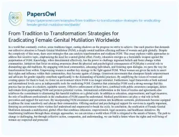 From Tradition to Transformation: Strategies for Eradicating Female Genital Mutilation Worldwide. (2024, Mar 12). Retrieved from https://hub.papersowl.com/examples/from-tradition-to-transformation-strategies-for-eradicating-female-genital-mutilation-worldwide/