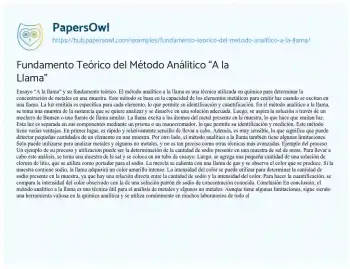 Fundamento Teórico del Método Análitico “A la Llama”. (2026, Feb 06). Retrieved from https://hub.papersowl.com/examples/fundamento-teorico-del-metodo-analitico-a-la-llama/