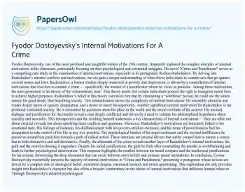 Fyodor Dostoyevsky's Internal Motivations For A Crime. (2024, Apr 22). Retrieved from https://hub.papersowl.com/examples/fyodor-dostoyevskys-internal-motivations-for-a-crime/