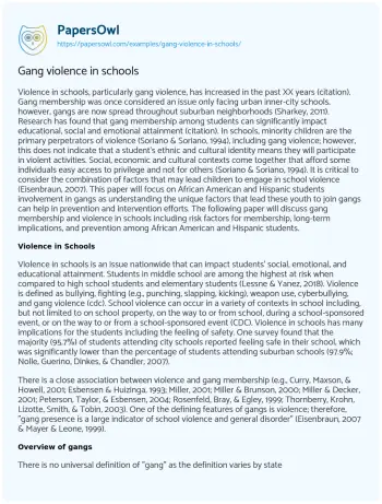 Gang violence in schools. (2019, Dec 23). Retrieved from https://hub.papersowl.com/examples/gang-violence-in-schools/