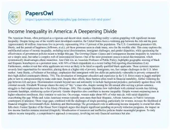 Income Inequality in America: A Deepening Divide. (2021, May 09). Retrieved from https://hub.papersowl.com/examples/gap-between-rich-and-poor/