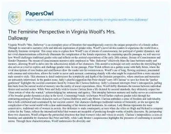 The Feminine Perspective in Virginia Woolf's Mrs. Dalloway. (2019, Dec 29). Retrieved from https://hub.papersowl.com/examples/gender-and-femininity-in-virginia-woolfs-mrs-dalloway/