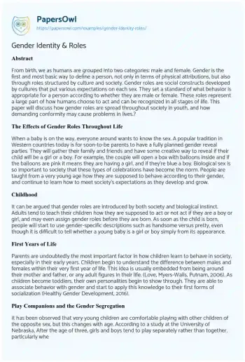 Gender Identity & Roles. (2019, Feb 10). Retrieved from https://hub.papersowl.com/examples/gender-identity-roles/