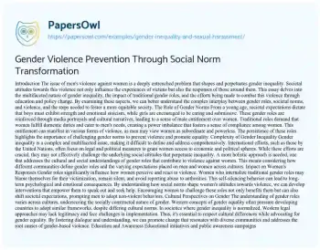 Gender Violence Prevention Through Social Norm Transformation. (2022, Feb 12). Retrieved from https://hub.papersowl.com/examples/gender-inequality-and-sexual-harassment/