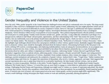 Gender Inequality and Violence in the United States. (2021, Mar 18). Retrieved from https://hub.papersowl.com/examples/gender-inequality-and-violence-in-the-united-states/