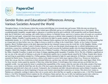Gender Roles and Educational Differences Among Various Societies Around the World