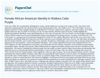 Female African American Identity in Walkers Color Purple. (2021, May 24). Retrieved from https://hub.papersowl.com/examples/gender-roles-and-racism-in-the-color-purple/