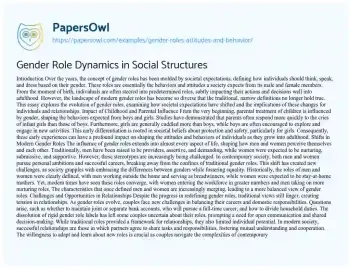 Gender Role Dynamics in Social Structures. (2020, Mar 22). Retrieved from https://hub.papersowl.com/examples/gender-roles-attitudes-and-behavior/