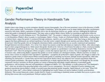 Gender Performance Theory in Handmaids Tale Analysis