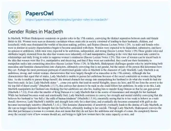 Gender Roles in Macbeth