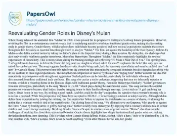 Reevaluating Gender Roles in Disney's Mulan. (2023, Jun 19). Retrieved from https://hub.papersowl.com/examples/gender-roles-in-movies-unmasking-stereotypes-in-disneys-mulan/